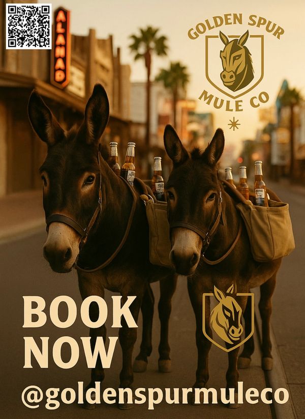 Golden Spur Mule Co. is a family-owned Vegas company bringing the charm of our mini beer burros, Captain Engelland and Captain Stone, to weddings, parties, sporting events, school functions, and local breweries. Proudly Vegas born, we love our community, our Golden Knights, and sharing the fun of our burros at every event.